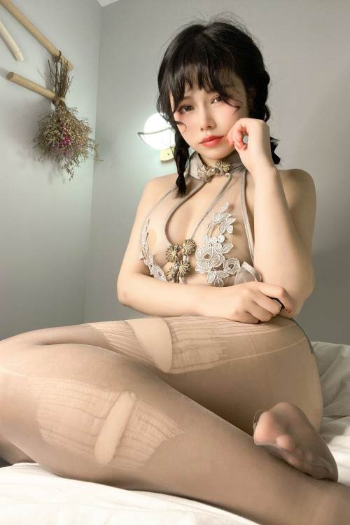 七月喵子 – 透明灰撕袜 / 44P